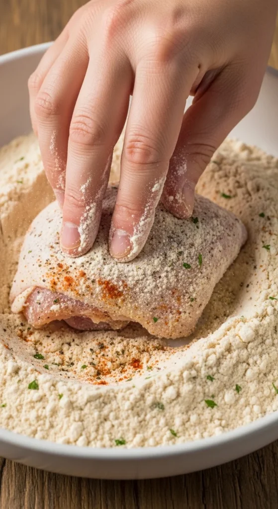 For ultra-crispy chicken, use a   two-step coating  :