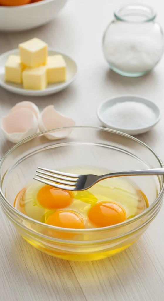 - 1–2 tablespoons milk or cream per 4 eggs