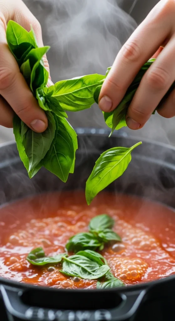 – Fresh basil & oregano: add in the final 5 minutes