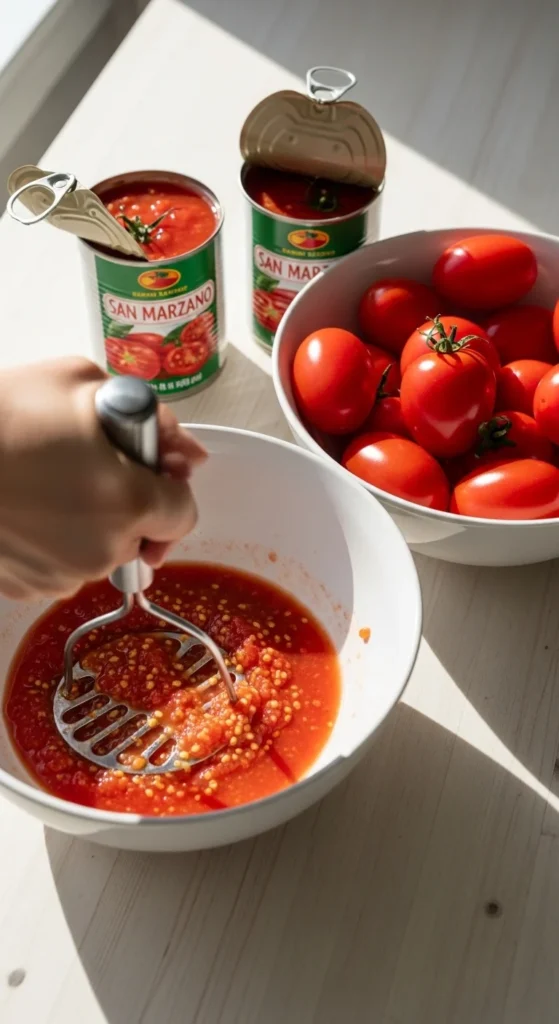 Look for DOP-certified San Marzano tomatoes, which guarantees they’re grown and packed in Italy under strict standards. Generic canned tomatoes can work, but they often need more fixing later.