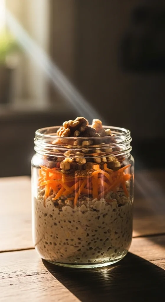 These carrot cake overnight oats are creamy, slightly spiced, and naturally sweet, reminiscent of carrot cake flavor without baking. Perfect for make-ahead spring breakfasts, combining oats, carrots, cinnamon, and nuts for texture and flavor.