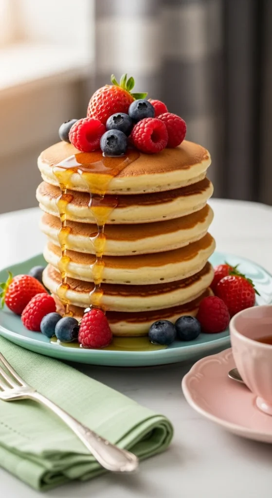 This fresh berry pancake stack is visually stunning and bursting with flavor. Fluffy pancakes layered with fresh berries make it perfect for spring mornings, whether for a special weekend breakfast or casual brunch.