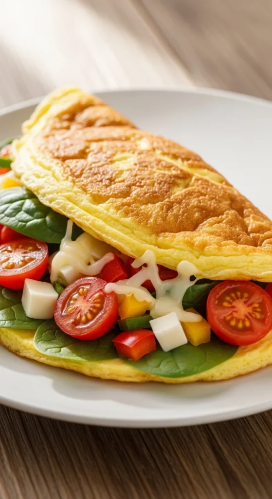 This veggie omelette blends fresh spring vegetables with soft, fluffy eggs, creating a vibrant and satisfying breakfast. The combination of textures—soft eggs, crisp peppers, and tender spinach—gives each bite a bright, fresh flavor that works for both solo mornings and casual brunch gatherings.