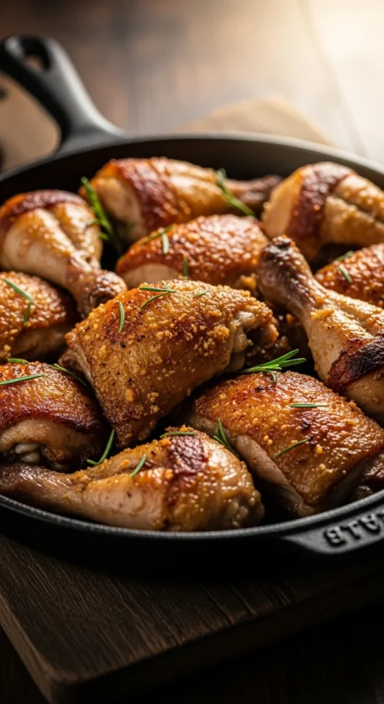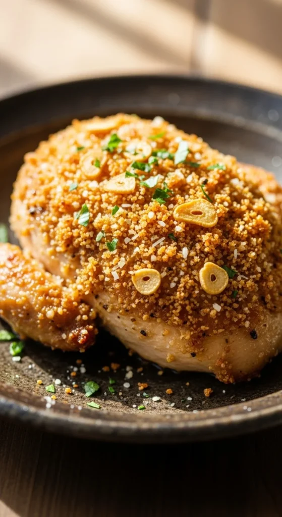 This chicken is crispy on the outside and juicy inside, with rich garlic and cheese flavors.