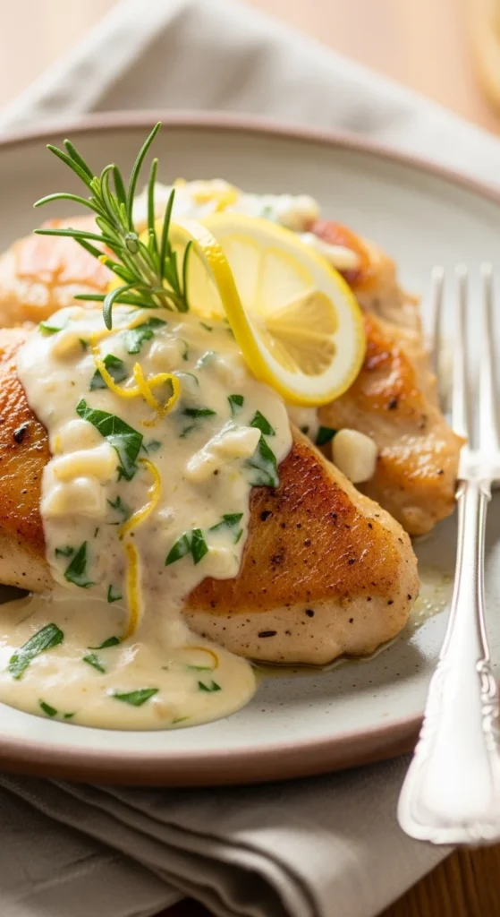 This chicken dish blends creamy sauce with lemon flavor, creating a smooth and fresh taste.