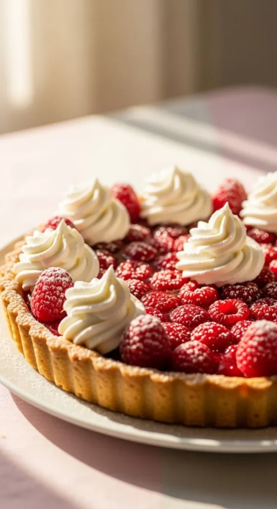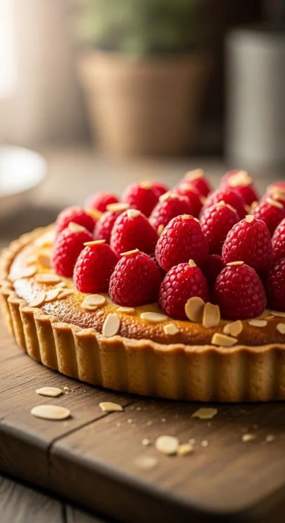 This raspberry almond tart combines buttery pastry with almond cream and juicy raspberries, creating a dessert that’s light yet indulgent. Its nutty undertones and tart sweetness make it ideal for spring celebrations, brunches, or as a bright ending to any meal.