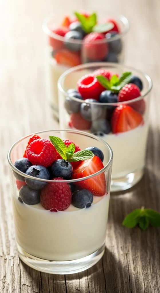 Top with fresh berries and mint leaves.