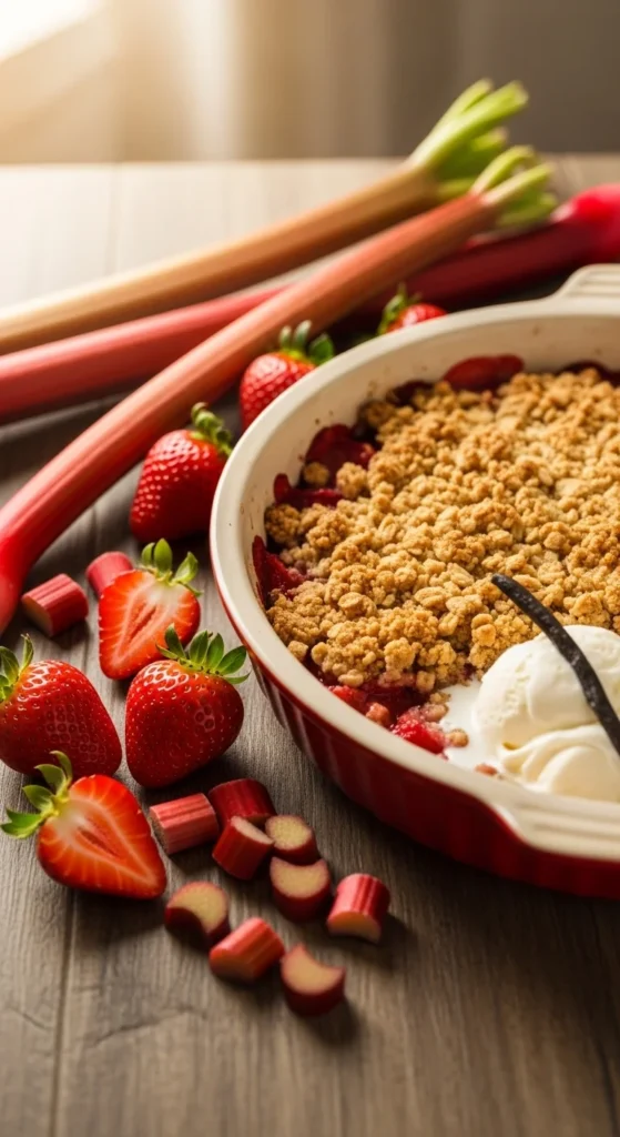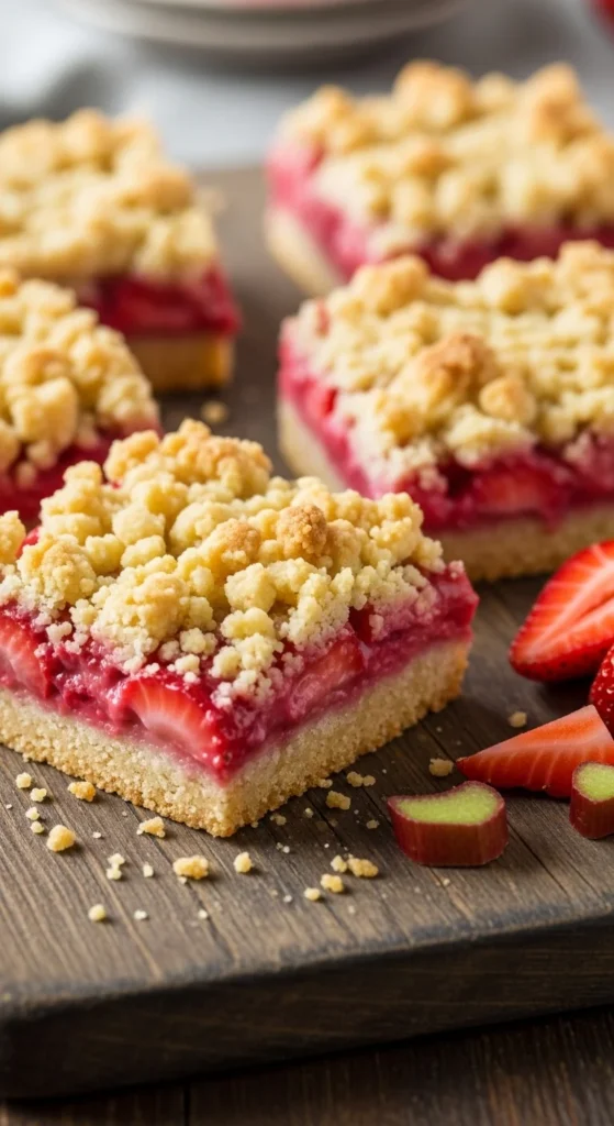 These crumble bars combine tart rhubarb and sweet strawberries under a buttery crumble topping. Portable and delicious, they’re perfect for spring brunch, picnics, or dessert tables.