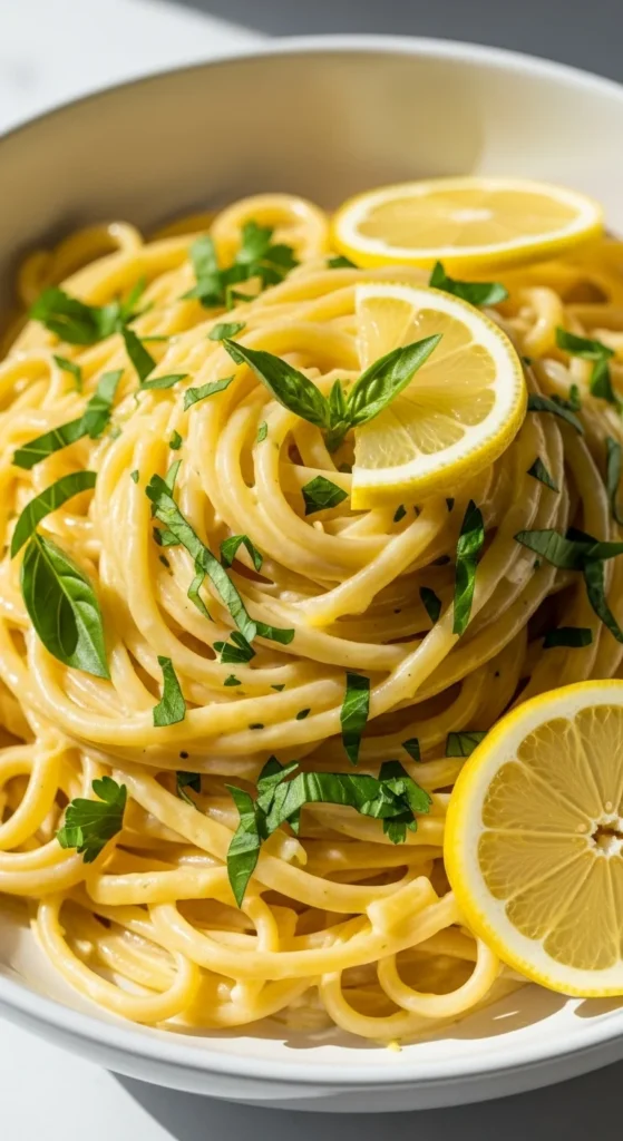 This pasta has a soft creamy sauce with a fresh citrus touch that feels light and refreshing. The lemon flavor adds brightness while the cream keeps the texture smooth and comforting. It’s a simple yet flavorful dish that works beautifully for spring meals and quick dinners.