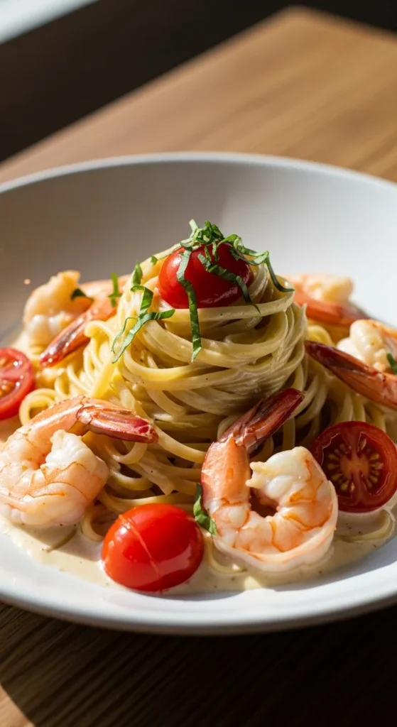 This shrimp pasta feels light yet rich in flavor. The seafood pairs beautifully with creamy sauce and fresh herbs, making it ideal for spring meals.