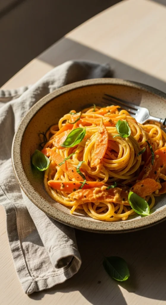 This pasta blends creamy sauce with sweet carrots, creating a gentle and comforting flavor.