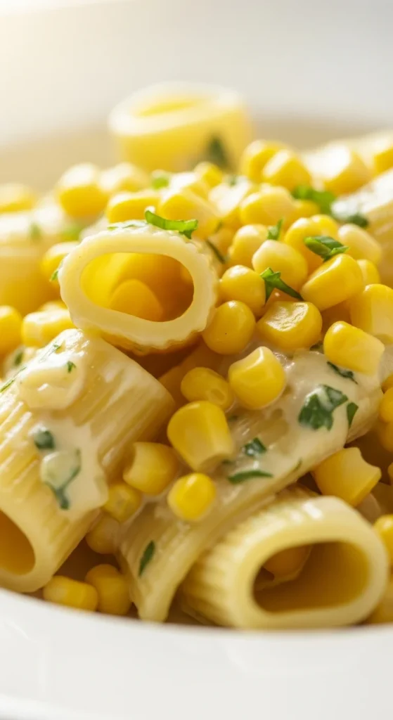 This pasta mixes sweet corn with creamy sauce, creating a comforting yet fresh dish.