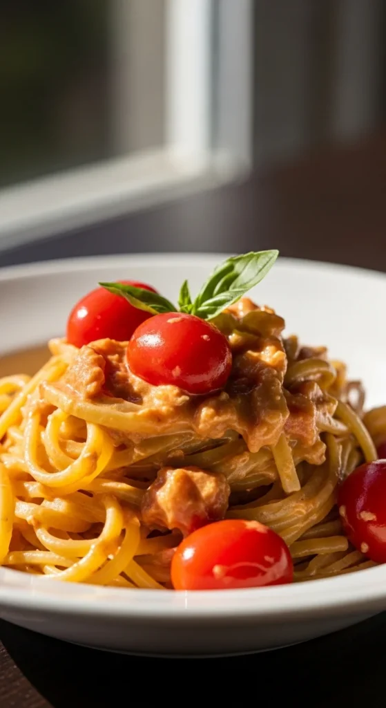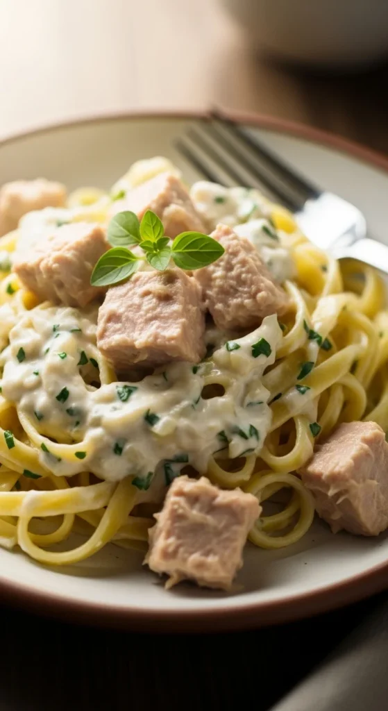 This tuna pasta feels light yet filling, with smooth cream sauce and mild seafood flavor.