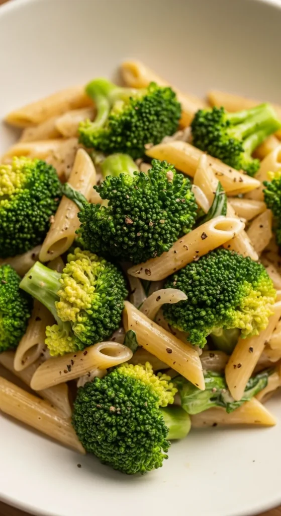 This pasta mixes creamy sauce with crisp broccoli, creating a fresh and comforting dish.